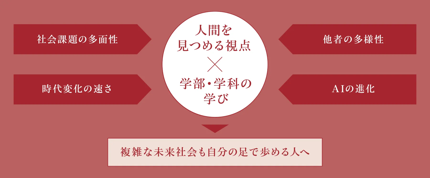 適切な価値観・世界観を持つことで各学部・学科の学びに深みと広がりが生まれ、