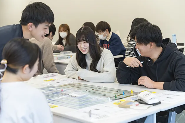 学科横断型の履修やテーマ別ゼミ、卒業研究など、学生の興味関心に応じた学びが可能。専門性を深めつつ、幅広い視野と課題解決力を育てます。