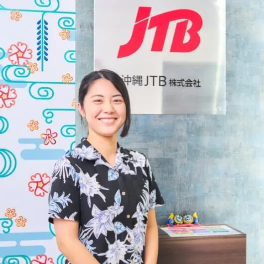 観光業はその土地を訪れた人々に未来に繋いでいくべき歴史や文化を伝える力を持つ仕事だと思い、沖縄JTB株式会社に入社しました。現在は仕入販売部にて、事業パートナーである沖縄の宿泊施設への営業に携わっています。地域の宿泊施設の販売を伸ばしていくために、販売促進力、知識力の向上に努めています。今後は、身につけたスキルと経験、さらには大学での学びを糧にし、観光の力で歴史や文化の継承と地域の活性化に貢献していきたいです。