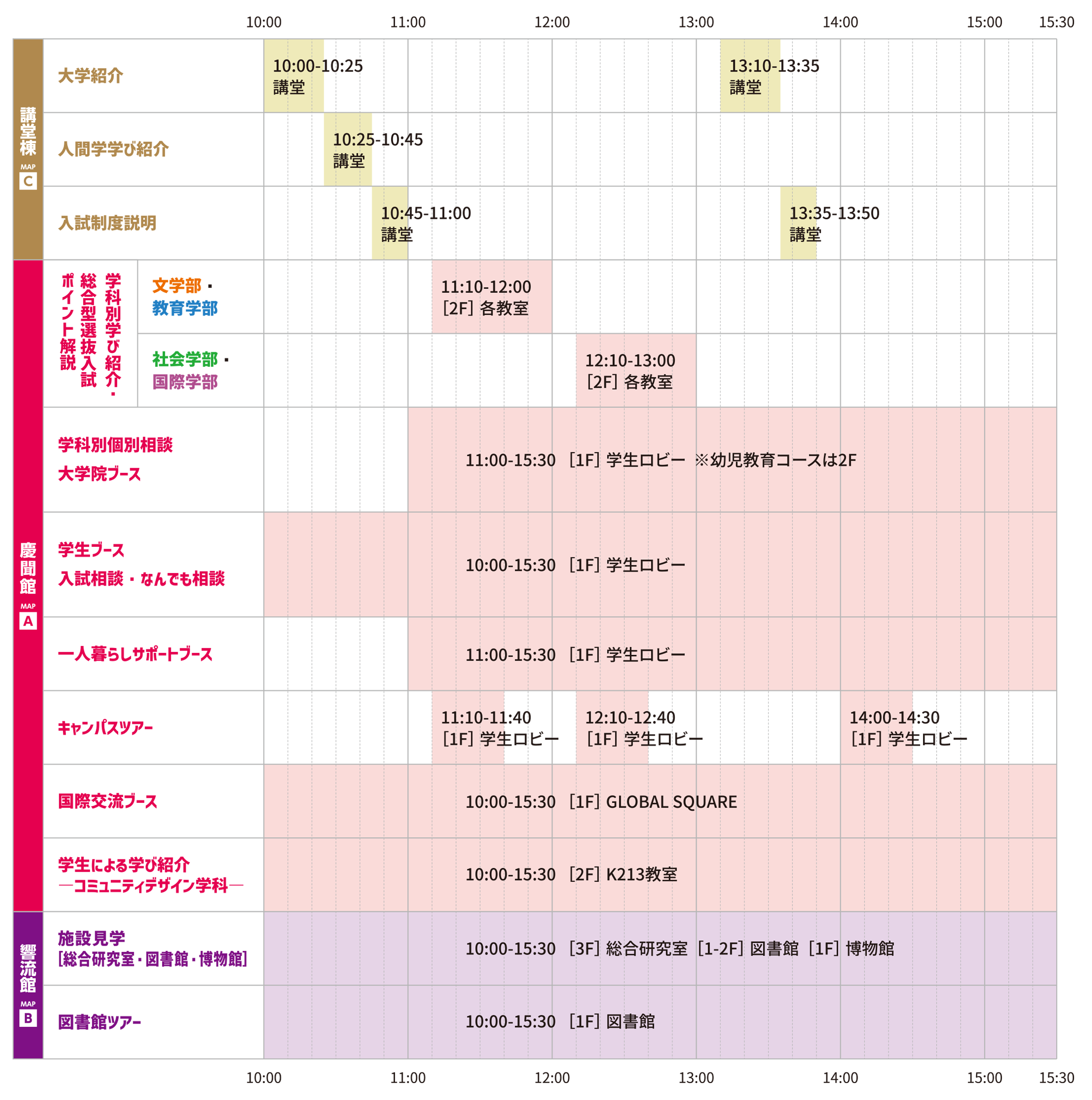 学生スタッフが学内を案内する「キャンパスツアー」を実施します。参加を希望する方は学生ブースに集合してください。