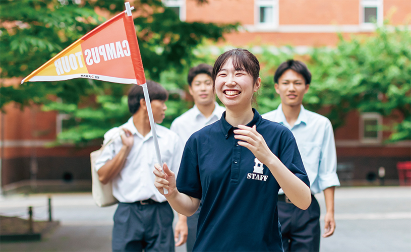 学生スタッフが学内を案内する「キャンパスツアー」を実施します。参加を希望する方は学生ブースに集合してください。
