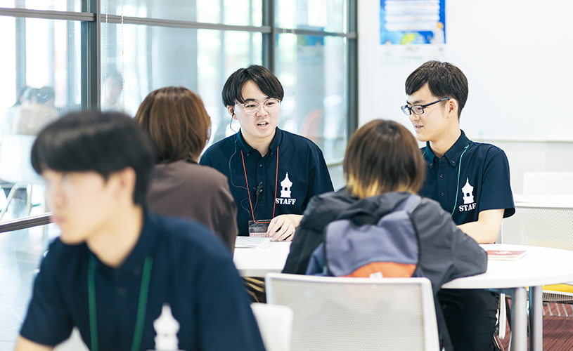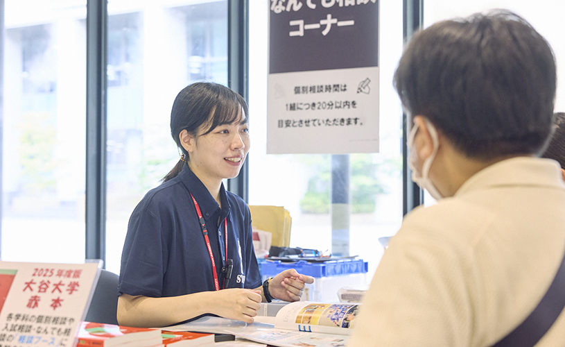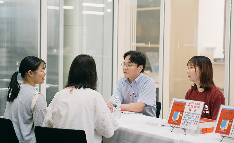 オープンキャンパスに参加する醍醐味は、大学生の話を直接聞くことができること!「学生ブース」では、大谷大学での学生生活について、大学生から直接聞くことができます。不安や疑問に思っていることを先輩に聞いて解消してください。