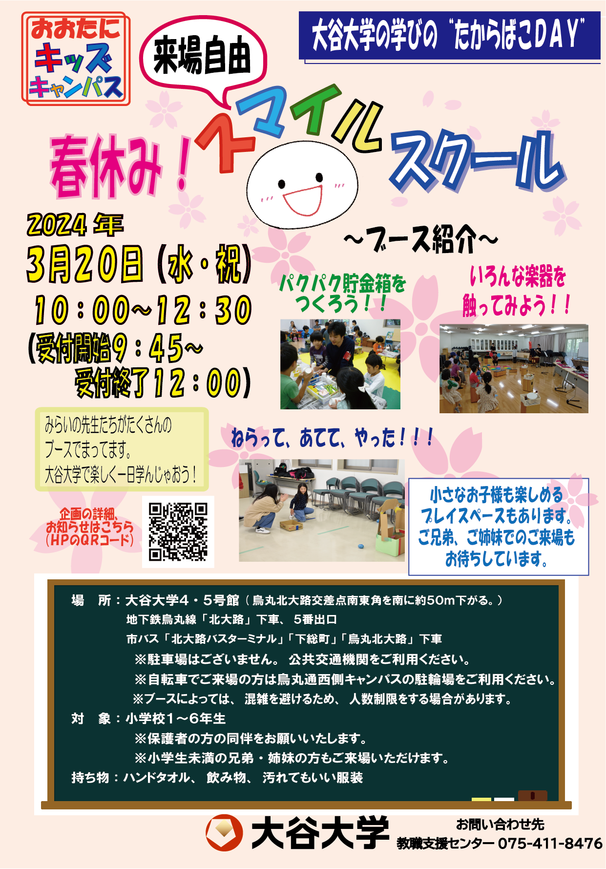 12月17日(日)の14:00~16:30、大谷大学4・5号館において、地域の3歳から小学校6年生を対象に「おおたにキッズキャンパス~冬のわくわく教室~」と題して、様々な学習体験を企画しました。
