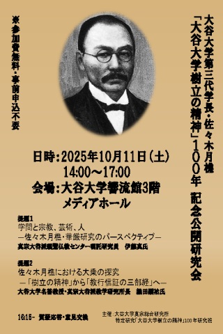 大谷大学第三代学長・佐々木月樵 「大谷大谷大学樹立の精神」100年 記念公開研究会