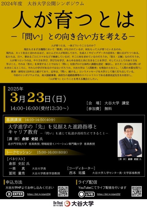 2024年度大谷大学公開シンポジウム「人が育つとは」