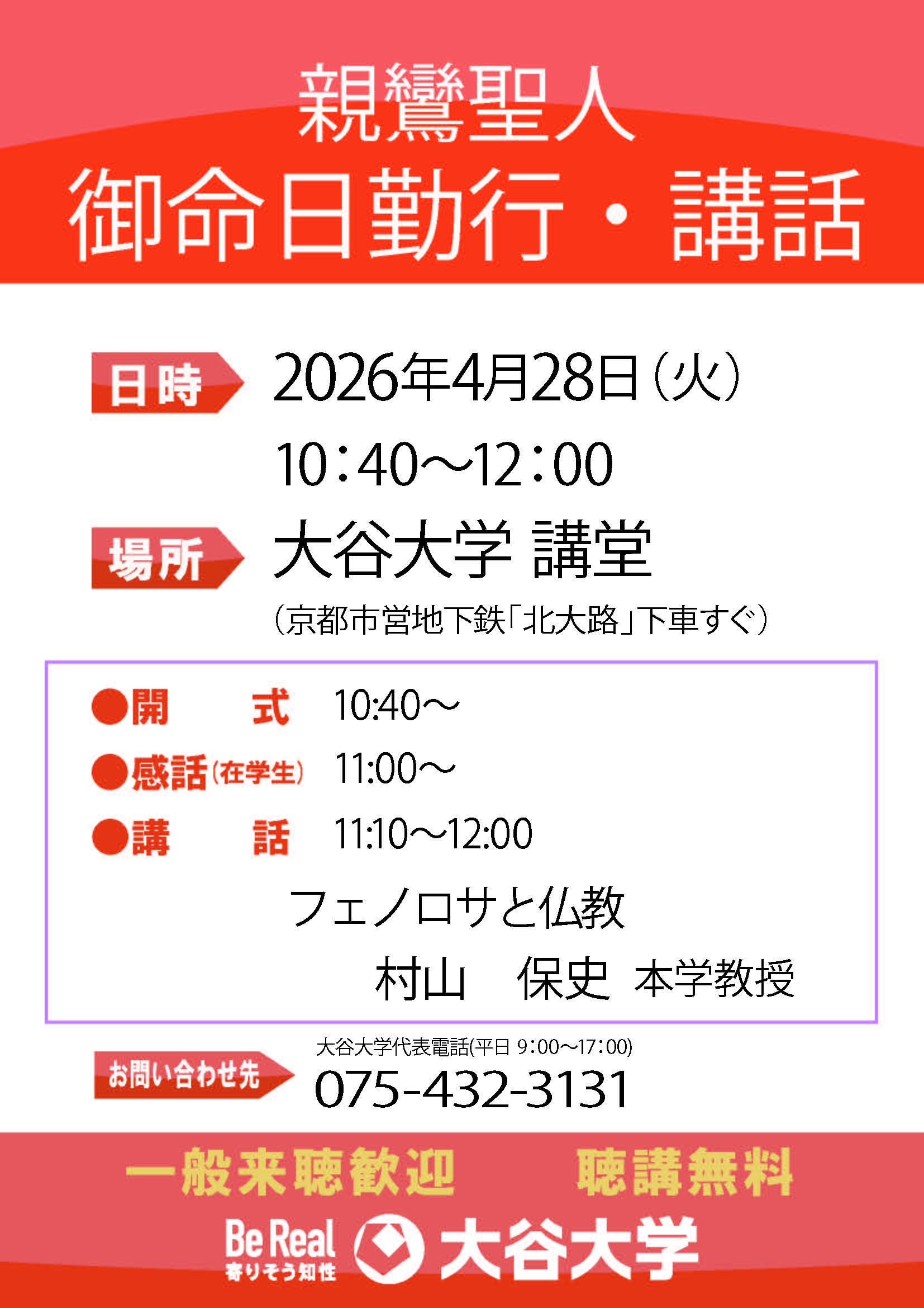 2026年4月御命日勤行・講話を以下の通り厳修しますので、多数ご参集くださいますよう、ご案内いたします。