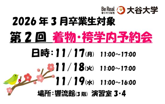 2026年3月卒業・修了予定者を対象に、卒業式日の着物・袴の学内予約会を開催いたします。