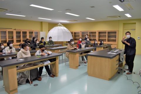 当日は天候に恵まれ、月と木星の接近や、そのほかの惑星の様子を高性能な天体望遠鏡で観測することができました。また教育学部学生2名が行ったミニ講座では、太陽系や星座についてのクイズも交えて、楽しみながら知識を深めてもらいました。