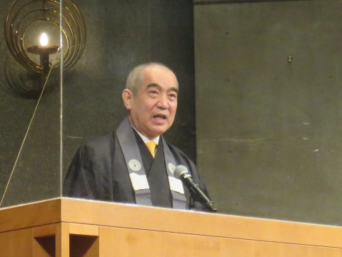 引き続いて、学校法人真宗大谷学園の木越渉理事長より祝辞があり、「皆さんは大谷大学で学ばれて、いよいよ社会に出られます。人によっては、人前でお話しなければいけない場面が出てきますが、言葉を話すということよりも、聞くということがはるかに大事になってきます。皆さんは学生であったので、話すということよりも聞くことが本分であったと思います。ぜひともそれを続けてください。聞く力を大事にするというあゆみがあることに気づくことは、人生を大きく変えていくことになります」とメッセージを送りました。