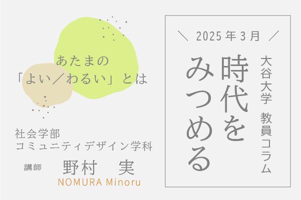本学の教員による連載系読み物コンテンツ「時代をみつめる」の最新記事を公開しました。 2025年3月号は、社会学部 コミュニティデザイン学科 野村 実 講師によるコラムです。 ぜひ、ご覧ください。