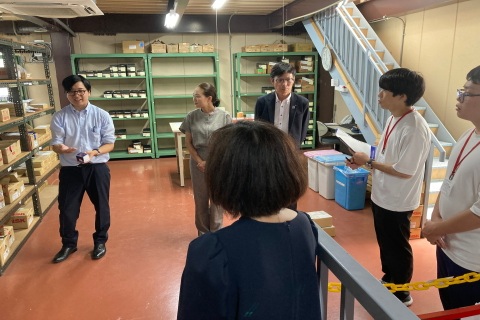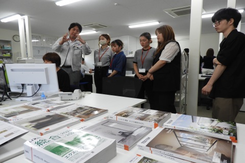 住宅・エクステリア・インテリアなどの建築資材の提案、販売を行っている会社です。様々なパンフレットが並ぶオフィスを見学しました。