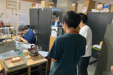 社内唯一の京象嵌の職人さんの制作現場も見学させていただきました。