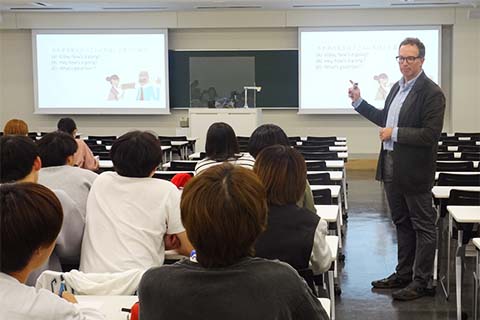 2024年9月24日に、国際学部国際文化学科第1学年後期の必修科目である「国際言語概論」の初回講義がありました。