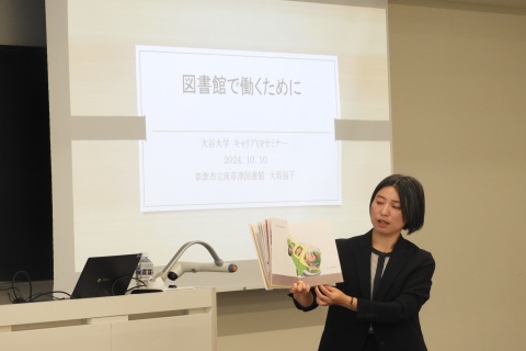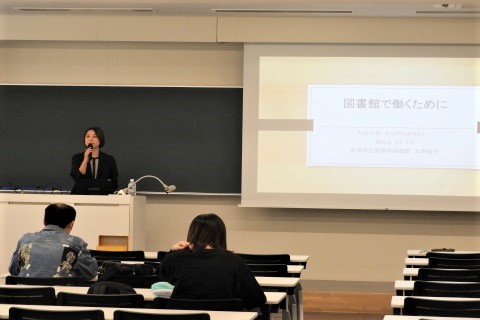 講師には、本学卒業生の、草津市立南草津図書館 大西協子副館長にお越しいただきました。