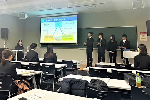 受賞したチームのリーダーを務めた岡田紗奈さん(社会学部コミュニティデザイン学科第2学年)からは、「私たちは一年間ヒアリング調査やフィールドワーク、バスの乗車体験会の企画運営を通じて地域と関わり合いながら、活動と研究を行い今回の「地域共創型MM」に関わる政策提言を発表しました。 今回の提言が丹波篠山市の交通政策をより良いものにしていくだけでなく、公共交通に課題を抱える他の地域でも応用してもらえるよう、引き続き研究していきたいと考えています」と今後の活動に関する意気込みを語っていただきました。