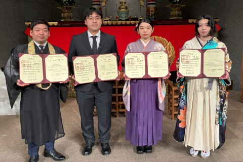 また、大学院博士後期課程を修了して博士の学位を取得された方には、学位記が授与されました。