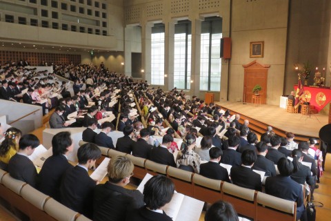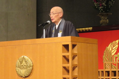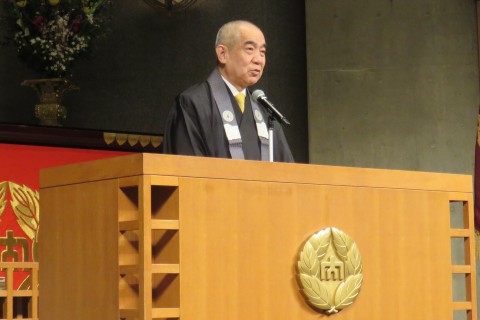 一楽学長は告辞で、「みなさんは、学生生活の中で様々な体験をなされてきており、悲しい体験、つらい体験をなされた方もあると思います。その体験が今の皆さんをつくっているということもきっとある。プラスのことばかりじゃない、マイナスのように思うことも、自分を育み、大きく育ててくれる、そういうご縁であったと思います。その意味で、親鸞聖人が言うとおり『無碍の一道』というのは、問題が消えてなくなって楽になったという話ではなくて、いろんなことが渦巻く、その中に大事な人生があるということであります。だから、体が動くときも動かないときも、健康なときも病気のときも、お仕事がうまくいくときもいかないときも、そこには皆さんの大事な人生がある。これだけは忘れないでいただきたい。みなさんの人生が、光り輝く人生であることを心から願っております」と述べました。