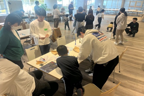 今回は、地域連携に興味を持って集まった清明高校の生徒による「せいめいコトおこし隊」の皆さんが企画した、紙飛行機大会とアップサイクルクラフトを実施いただきました。