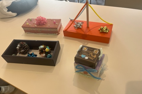 紙飛行機大会では、みなさんそれぞれのオリジナル紙飛行機にて距離を競いました。アップサイクルクラフトでは、不要なものとして集められた布や箱が、オリジナルの収納箱や飾りとしてアップサイクルされました。