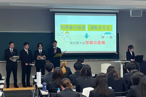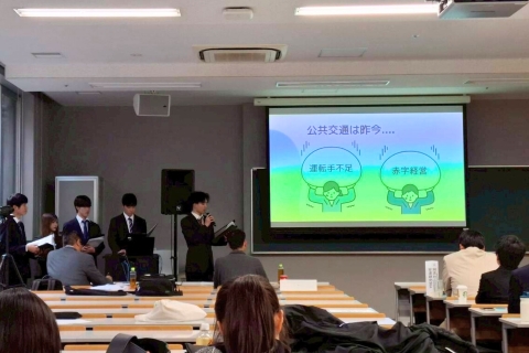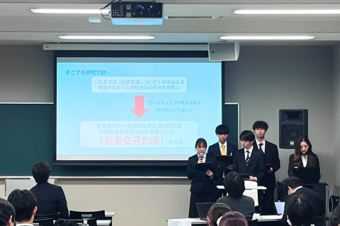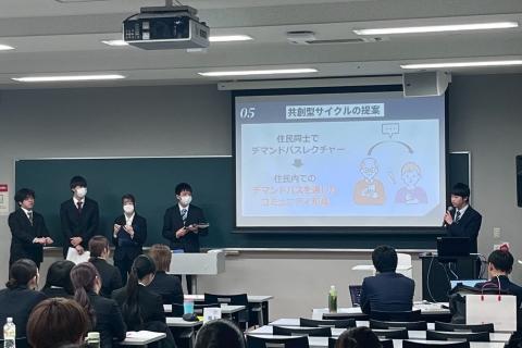 社会学部コミュニティデザイン学科の開講科目「プロジェクト研究実践」(担当教員:野村実講師)においてモビリティデザインプロジェクトとして活動しています。日頃のフィールドワークなど活動や住民との対話で見つけた課題をもとにした政策提案を行っています。今年は、出場した全5チームすべてが本選に出場し健闘しましたが、惜しくも発表における受賞には至りませんでした。