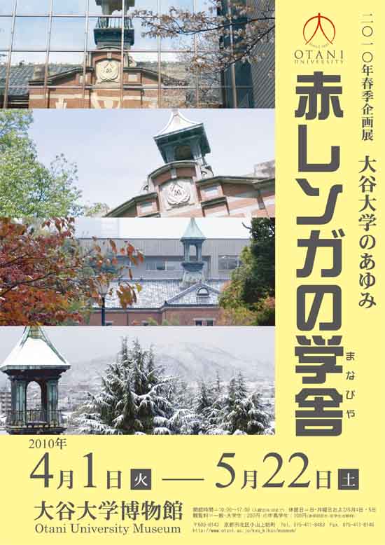 本展覧会は「『真宗大学』から『真宗大谷大学』へ」、「青写真にみる赤レンガ」、大谷大学の設立と『樹立の精神』」の3つのテーマから構成されています。赤レンガの学舎で築き上げられた近代仏教研究によって大谷大学はその一大拠点となり、世界に仏教を開放してきました。これらを担った先師たちの大いなる活躍を感じていただければ幸いに存じます。