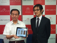引き続き、人文情報学科・池田教授(写真・左)と本学情報教育アドバイザー伴先生(写真・右)からは、学科カリキュラムへのiPadの導入経過と、2011年度から取り組む教育プログラム構築について、iPadの実演を交えながら以下の通り説明がなされました。