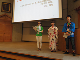 「前期プレゼン合同発表会」は、「京都」をテーマに人文情報学科の学生たちが、音や画像など様々な工夫を凝らして、プレゼンを行いました。