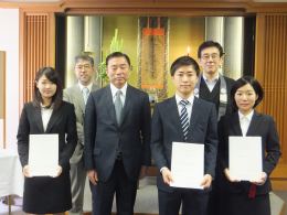 今年度の授与式は、7月11日(金)に本学の尋源講堂にて執り行われ、水島副学長より奨学生証書が、創設者の石間氏からは記念品が、森尻真紀さん(真宗学科第4学年)、古川一輝さん(教育・心理学科第4学年)、脇本久美さん(教育・心理学科第4学年)の3名に授与されました。