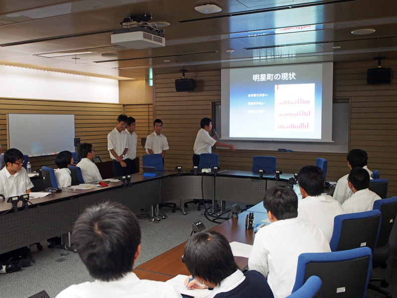 二日目は、一日目同様にグループに分かれ、発表用スライドの仕上げ作業とプレゼンのリハーサルを行いました。授業の後半では、各グループによるプレゼンを行い、発表内容等を相互に評価しました。発表内容がまとまらず時間が余ってしまったグループや緊張してうまく話すことができなかったグループ等ありましたが、受講生それぞれが人に伝えることの面白さと限られた時間の中で物事に取り組むことの難しさを実感しました。