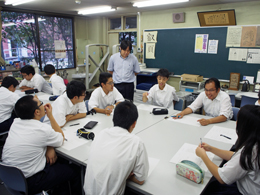 さらに特別プログラムとして、プレゼンテーションの授業後に短期大学部仏教科の一般研究室を訪問し、上野牧生助教による「ほんとうにたいせつなこと」をテーマとした模擬授業を実施しました。講師からの「もし今日が人生最後の日であるとしたら何をしてすごしますか」という問いに対して、受講生は各自の回答と他のメンバーの回答を比較しながら、何を大切にしなければならないのかについて考えました。