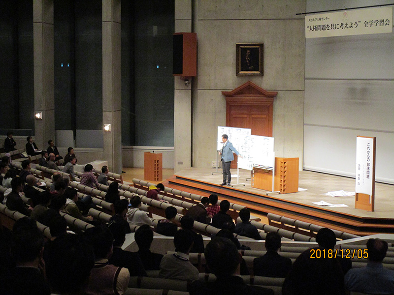 12月5日(水)18時より、2018年度第2回“人権問題を共に考えよう”全学学習会を開催し、学生、教職員、一般来聴の方々など約250名にご参加いただきました。