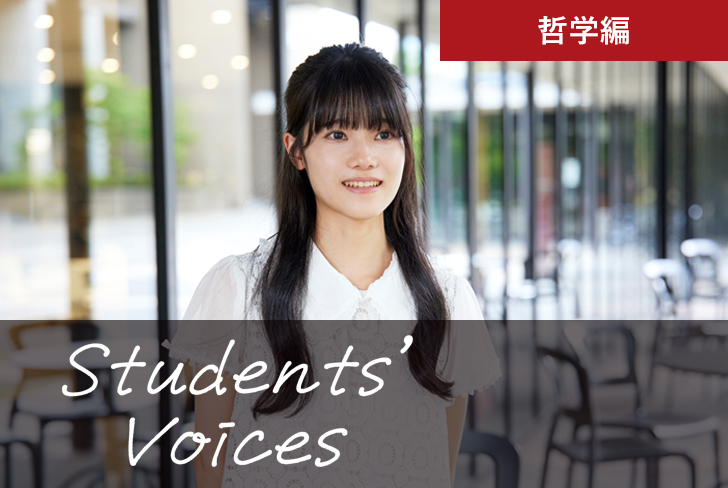 入学してから驚いたのは、哲学という学びが想像以上に多様であること。古代ギリシャから現代哲学まで、また宗教学、心理学、倫理学など、さまざまな分野を自分の中に取り込むことができ、どの授業も毎回90分という時間があっという間に感じられるほど引き込まれます。哲学以外の授業では、過去に国民総幸福量が高かったブータンの人びとの死生観、宗教観を学んだことが印象に残っています。幸福とは何かを仏教の考え方も参考にしつつ探っていく過程で視野が広がったように思います。