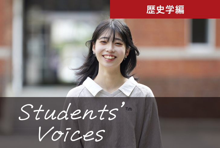 入学以来、私は自分の興味をとことん深めていける歴史学科の学びの環境を心から楽しんでいます。「くずし字」で書かれた古文書を読み、その時代に生きていた人たちの生活の様子や価値観、社会の出来事などを考察していきます。仮説を立てて検証するような授業では、自分の考えを言語化して発表したり、他の学生や先生と話し合ったりする場面も多くあります。歴史学科の学びに唯一解というものは存在せず、さまざまな材料やヒントをもとに真相に近づき、説得力のある解を導き出すことが学びだと実感しています。その学びの中で、自然と「自分と人の考えは違って当たり前。どこが違う部分なのか、共通点があるとしたら何だろう」と、他人との違いをポジティブに受け入れられるようにもなりました。