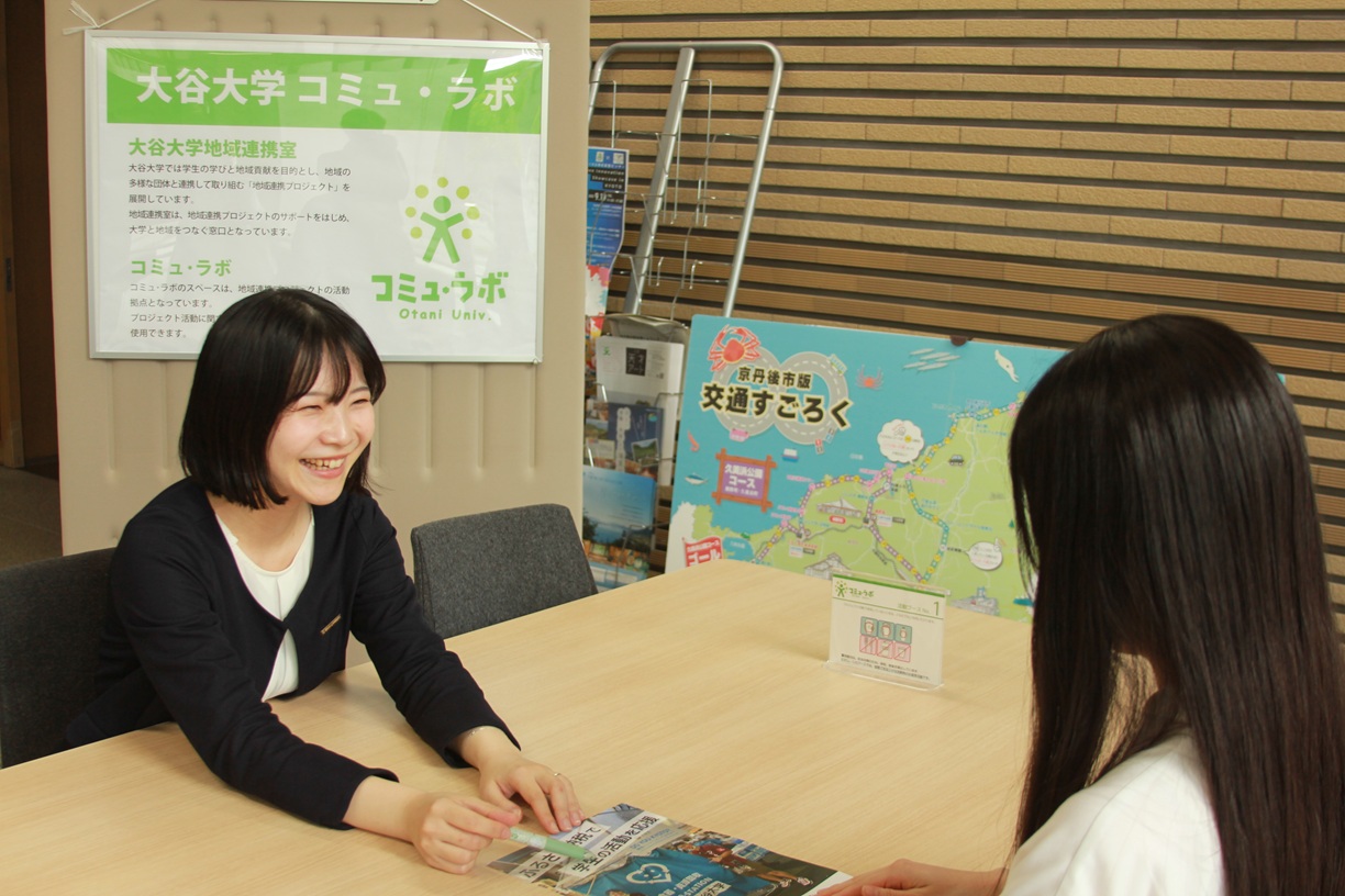 入職直後に担当した「大谷大学生チャレンジ企画 地域に寄りそうプロジェクト(通称:ちいプロ)」の立ち上げは、特に印象に残っている仕事のひとつです。このプロジェクトは、大学の第2次中長期プラン「グランドビジョン130(2022~2031)」に掲げられてはいたものの、具体的な内容はゼロの状態からのスタートでした。まずは他大学の事例研究から始め、上司や同僚、地域連携アドバイザーや先生方と何度も議論を重ねながら、補助金の規模や活動の目的、定義などを一つひとつ固めていき、まさに「叩き台を叩きまくって」創り上げました。「地域に寄りそう」と「(学生の)チャレンジプロジェクト」というキーワードを組み合わせたこのネーミングは、SNSでの広報でハッシュタグを付けて発信しやすいよう考えて「ちいプロ」と、親しみを込めて呼んでいます。