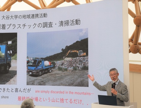 万博では、地球規模の課題解決をテーマにした多くのイベントやセミナーが行われていました。ブルーオーシャン・ドームでは、海の課題解決に取り組む共創アクションプラットフォーム、一般社団法人ブルーオーシャン・イニシアチブ(BOI)が9月15日〜21日にわたって「BLUE CHALLENGE 2025」を開催しました。 9月16日のテーマは、「海洋プラスチックの回収と再資源化の加速」。担当教員の鈴木教授がキーノートセッションに登壇し、地域や企業と協働した本学の京都府京丹後市での漂着プラスチックごみ調査・清掃活動の成果をもとに報告しました。当日の様子は、現在もBOIのYoutubeからご視聴いただけます。